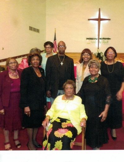 Picture shown: Sis. Betty Pennywell, Sis. Zola Drain, Sis. Vallie Mims, Bro. John Christopher, Sis. Shirley Wright, Sis. Ruth Bryant, Sis. Nadine Mitchell, Sis Bernice Mock (seated)